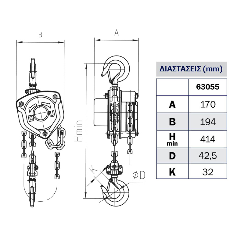 Συμπαγής κατασκευή από χάλυβα υψηλής αντοχής, με 2 σημεία στήριξης του άξονα μετάδοσης κίνησης.Μεγάλη διάμετρος δίσκου τριβής εξασφαλίζει αξιόπιστη πέδηση. Γάντζος ανύψωσης φορτίου από κράμα χάλυβα θερμικής επεξεργασίας με ασφαλιστικό άγκιστρο για μεγαλύτερη ασφάλεια.Εύκολη αλλαγή της αλυσίδας κίνησης και ομαλή λειτουργία.Το κάλυμμα καστάνιας στερεώνεται από τον άξονα μετάδοσης κίνησης και προστατεύει αποτελεσματικά το σύστημα πέδησης.Ενισχυμένος άξονας κίνησης υψηλής ακρίβειας και θερμικής επεξεργασίας.Αλυσίδα φορτίου από κράμα χάλυβα G80 σύμφωνα με το ISO 16877.