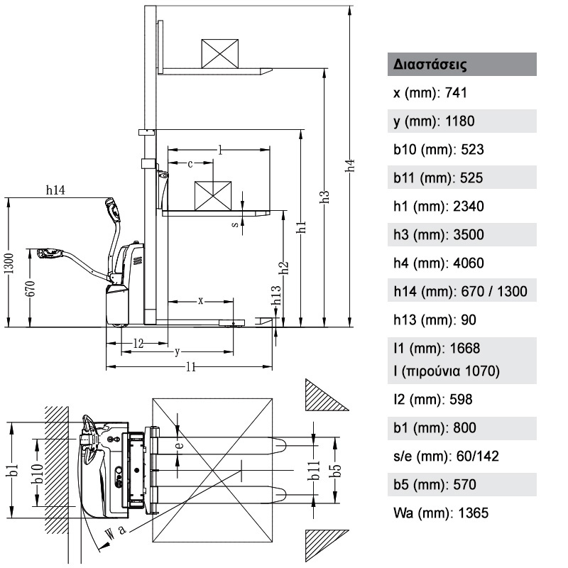 - Συνολικό ύψος περονοφόρου 4060mm.