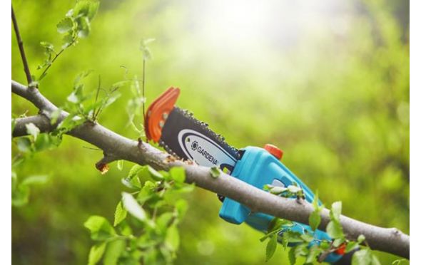 - Με το μήκος της λεπίδας των 20 εκατοστών και τηλεσκοπική λαβή, μπορείτε να φτάσετε σε κλαδιά σε ύψος έως και τέσσερα μέτρα - χωρίς να χρειάζεται να ανεβείτε ή να θέσετε τον εαυτό σας σε κίνδυνο σε μια ασταθή σκάλα.