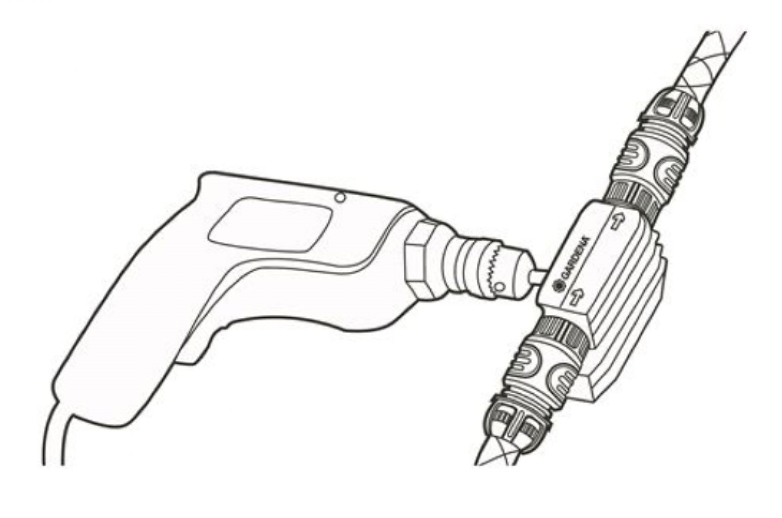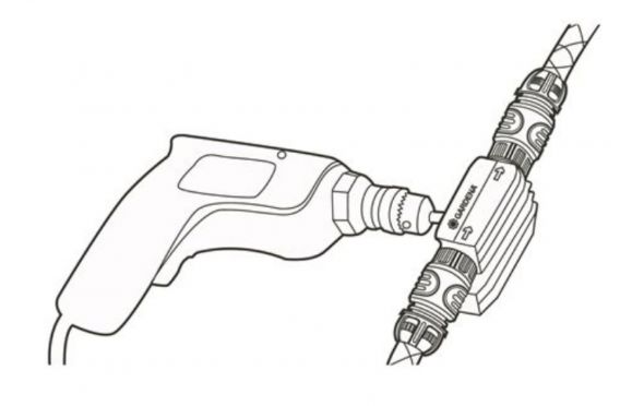 Ο άξονας μετάδοσης κίνησης εφαρμόζει στο σφιγκτήρα οποιουδήποτε τυπικού ηλεκτρικού τρυπανιού (Ψ 8mm). Με τα συνδετικά εξαρτήματα Original GARDENA System, είναι έτοιμο για άμεση λειτουργία.