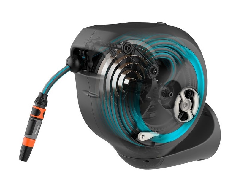 - Φυσικά, το Αυτόματο Καρούλι Λάστιχου RollUp M είναι κατασκευασμένο από υλικά υψηλής ποιότητας, τα οποία προσφέρουν προστασία από την υπεριώδη ακτινοβολία και τον παγετό, το ανθεκτικό καρούλι μπορεί να χρησιμοποιηθεί όλο το χρόνο.