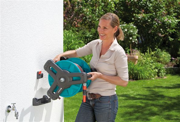 Αυτό το Καρούλι Λάστιχου σας υποστηρίζει όπου το χρειάζεστε. Προστατεύει το λάστιχο στον τοίχο κατά την αποθήκευσή του, αλλά μπορεί και να αφαιρεθεί για φορητή χρήση στον κήπο. Διαθέτει εργονομική λαβή και μπορεί να μεταφερθεί άνετα.