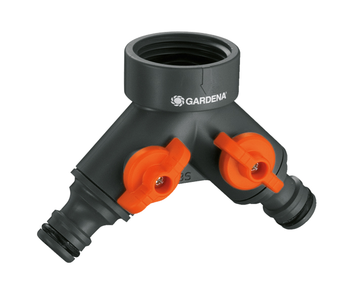 - Η Λοξή Διπλή Παροχή της GARDENA διευκολύνει τη λειτουργία δύο ποτιστικών συσκευών.