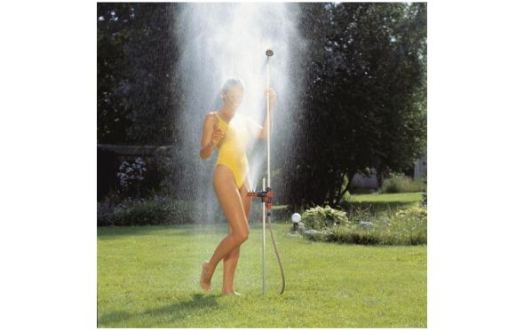 - Το ντους έξω μπορεί να είναι τόσο διασκεδαστικό! Με τον μυτερό πάσσαλο, το Ντους Κήπου Duo GARDENA μπορεί να στερεωθεί εύκολα στο γρασίδι ή στη βάση ομπρέλας βεράντας.
