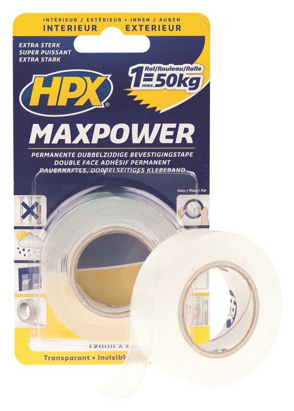 HPX - Max Power Αυτοκόλλητη ταινία διπλής όψεως διάφανη 19mm x 5m
