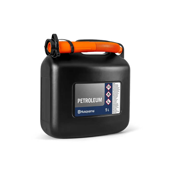 Ανθεκτικό δοχείο καυσίμου 5 λίτρων της Husqvarna με ενσωματωμένη λαβή που το καθιστά εύκολο στη μεταφορά. Συνοδεύεται από εύκαμπτο στόμιο για απρόσκοπτη πλήρωση με μειωμένο κίνδυνο τυχαίας έκχυσης.