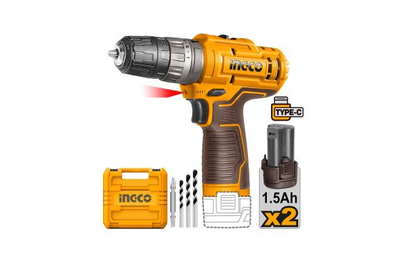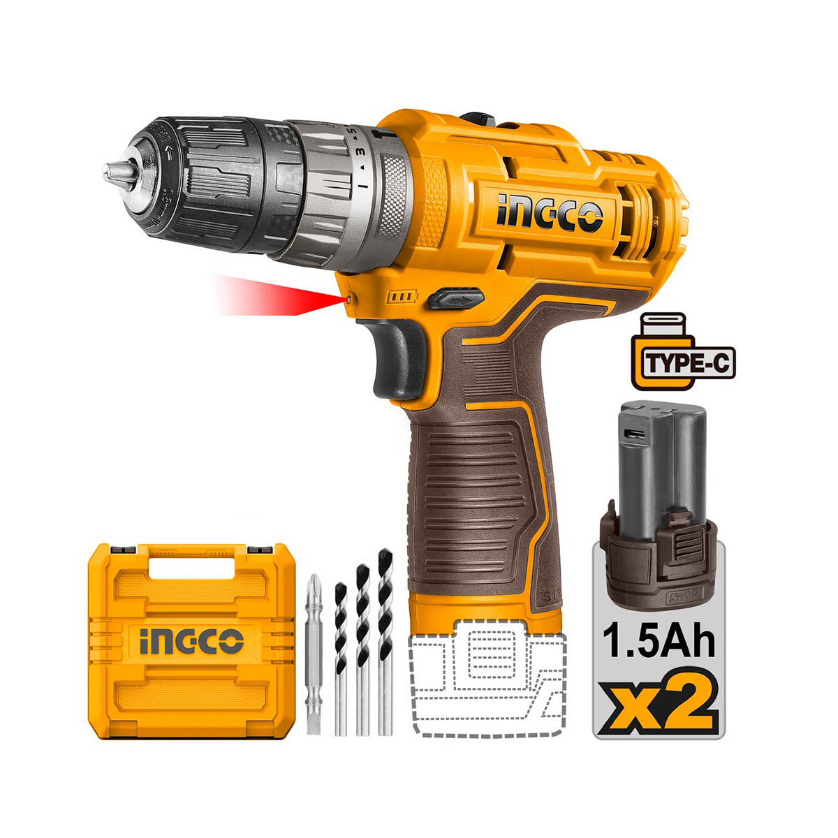 - INGCO - CIDLI12202E Κρουστικό Δραπανοκατσάβιδο 12V Li-Ion με Φόρτιση USB Type-C (2x1.5Ah).