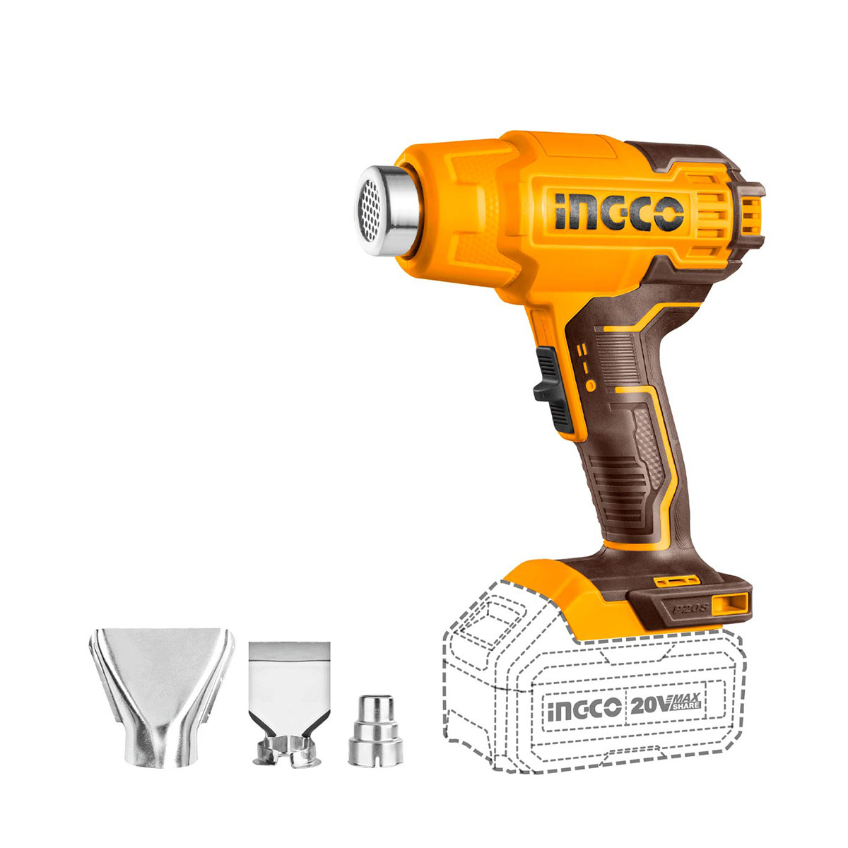 Ingco - HGLI2002 Πιστόλι Θερμού Αέρα Μπαταρίας 20V Li-Ion - Χωρίς Μπαταρία & Φορτιστή (Solo)