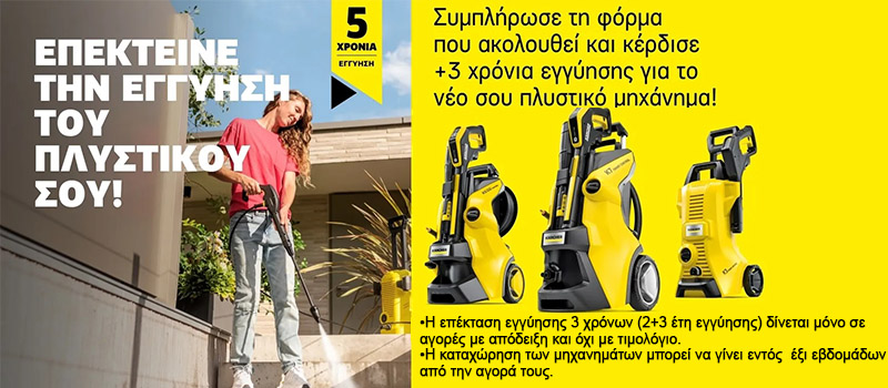 - Είναι επίσης εξοπλισμένο με πιστόλι σκανδάλης Quick Connect, εύκαμπτο σωλήνα υψηλής πίεσης 8 m, λόγχη ψεκασμού Vario Power (VPS), εκτοξευτήρα βρωμιάς και φίλτρο νερού.