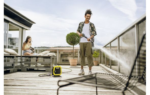 Η ισχύς που διαθέτει είναι ιδανική για το γρήγορο και αποτελεσματικό καθαρισμό μπαλκονιών, επίπλων κήπου και βεράντας, καθώς και ποδηλάτου ή μοτοσυκλέτας ή μικρού αυτοκινήτου.