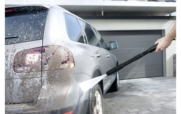 Η γκάμα του εξοπλισμού περιλαμβάνει ένα πιστόλι σκανδάλης με πρακτικό προσαρμογέα Quick Connect, έναν εύκαμπτο σωλήνα υψηλής πίεσης με σημαντικό μήκος 10 m, ένα αξιόπιστο φίλτρο νερού που προστατεύει την αντλία, μία κάνη υψηλής πίεσης Vario Power (VPS) και ένα τούρμπο μπεκ με περιστρεφόμενο σημειακό πίδακα.