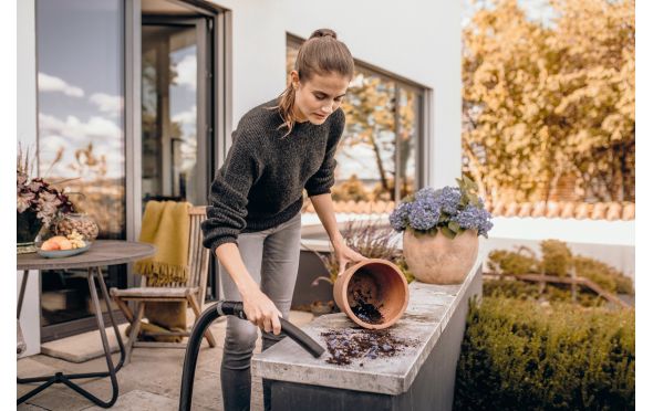 - Ο συμπαγής σχεδιασμός της, το δοχείο από ανοξείδωτο χάλυβα 17 λίτρων, το καλώδιο μήκους 4 μέτρων και ο σωλήνας αναρρόφησης μήκους 2 μέτρων την καθιστούν μια πραγματικά ευέλικτη συσκευή.
