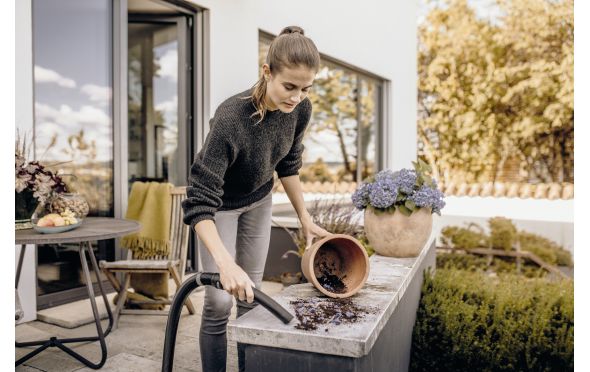 - Η σκούπα για υγρούς και ξηρούς ρύπους εντυπωσιάζει με τον συμπαγή σχεδιασμό της και τον ανθεκτικό πλαστικό κάδο χωρητικότητας 17 λίτρων, το καλώδιο 4 m, τον σωλήνα αναρρόφησης 2 m και τη σακούλα φίλτρου από φλις.