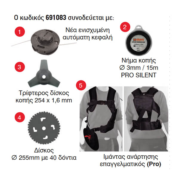 KRAFT - 691083 Θαμνοκοπτικό Βενζινοκίνητο Premium Line με Αντιδόνηση 62cc/3.46hp