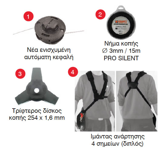 KRAFT - 691084 Θαμνοκοπτικό Βενζινοκίνητο Premium Line Διαιρούμενου Άξονα 62cc/3.46hp