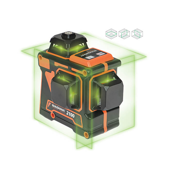 KRAUSMANN - 2100 Λέιζερ Επαναφορτιζόμενο Αυτοαλφαδιαζόμενο 3x360° Πράσινης Γραμμής 3.7V