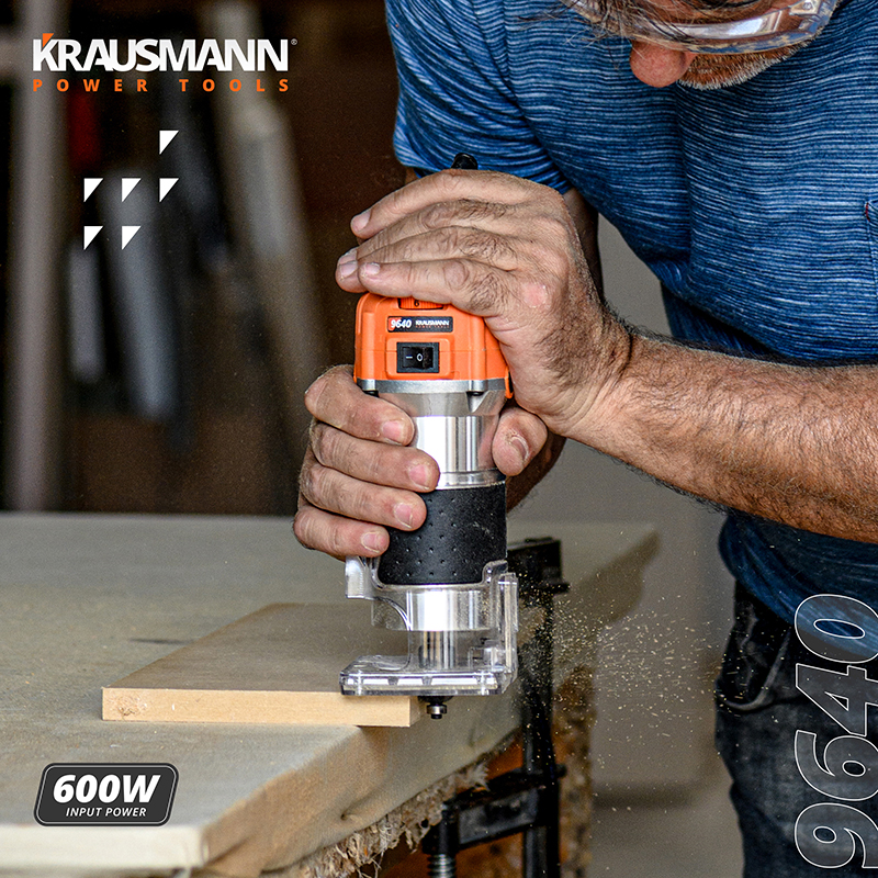 - Ρούτερ περιθωρίων compact βυθιζόμενο KRAUSMANN® 9640, με ισχύ 600W και ρυθμιζόμενη ταχύτητα.