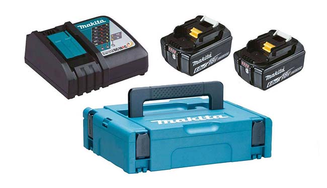 - Σετ δυο μπαταριών 18V / 6.0Ah με φορτιστή και βαλιτσάκι MakPac.