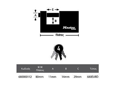 - Λουκέτο τάκος ύψιστης ασφαλείας με ατσάλινο λαιμό, MASTERLOCK.