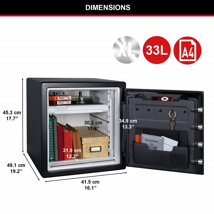 - Ατσάλινη κατασκευή με UL/ETL πιστοποίηση για 60’ αντοχή τη φωτιά στούς 927°C: Προστατεύει έγγραφα, ψηφιακά μέσα (CD, USB flash drives).