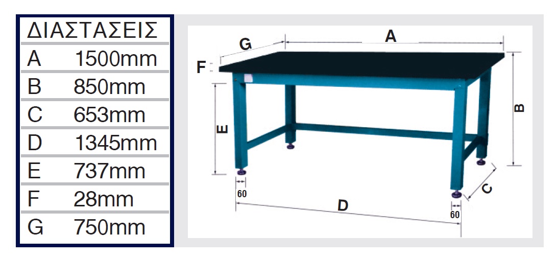 BULLE - WB-15L Πάγκος Εργασίας 1.5m