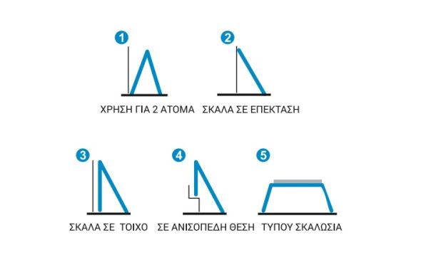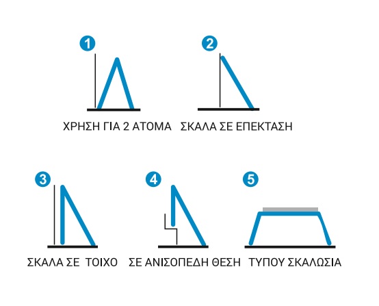 - Δυνατότητα σκάλας να διαμορφώνεται σε 5 διαφορετικές θέσεις κλειδώματος.