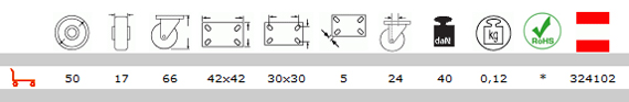 Τροχοί επίπλων κτιρίων από μαύρο πολυαμίδιο 6. Συνιστάται για χρήση σε καρότσια τροφοδοσίας με χαμηλό βάρος. Καλή αντοχή σε χημικούς παράγοντες: δεν είναι κατάλληλοι για ανώμαλο δάπεδο. Παραδείγματα συνιστώμενων εφαρμογών: Εκθεσιακά σταντ, καροτσάκια εστιατορίων, έπιπλα με ελαφρά φορτία.