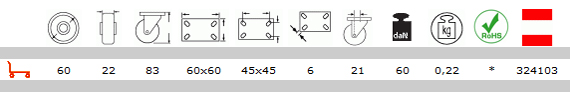 Τροχοί επίπλων κτιρίων από μαύρο πολυαμίδιο 6.Συνιστάται για χρήση σε καρότσια τροφοδοσίας με χαμηλό βάρος.Καλή αντοχή σε χημικούς παράγοντες: δεν είναι κατάλληλοι για ανώμαλο δάπεδο.Παραδείγματα συνιστώμενων εφαρμογών: Εκθεσιακά σταντ, καροτσάκια εστιατορίων, έπιπλα με ελαφρά φορτία.