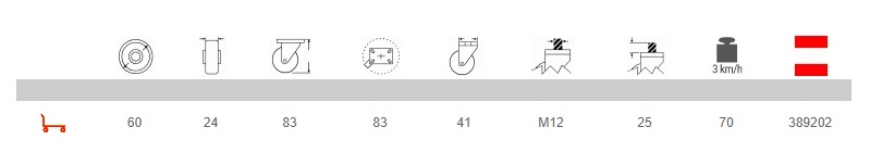 - Ρόδα Ø 60 Πολυπροπυλένιου περιστρεφόμενη με βίδα και φρένο.
