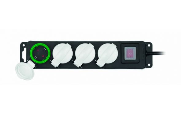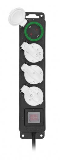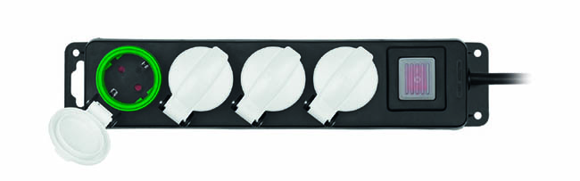 4 πρίζες σούκο IP44 με ειδικό ελαστικό κάλυμμα για προστασία από το νερό.