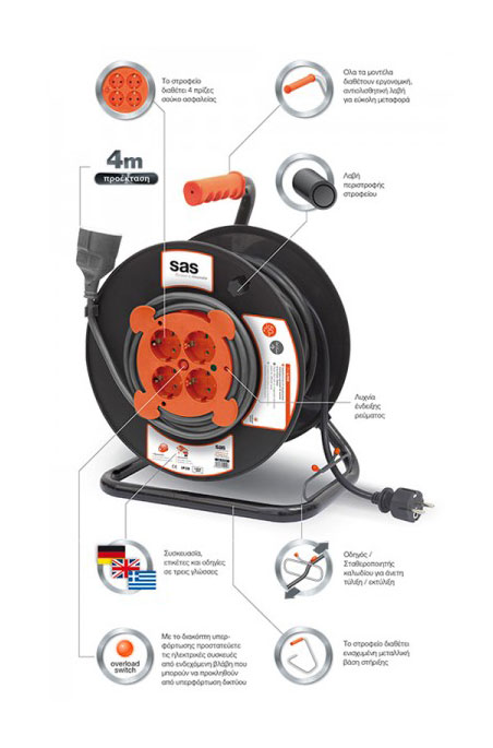SAS - Στροφείο Καλωδίου 5 Θέσεων 3 Χ 1.5 - 50Μ με προέκταση