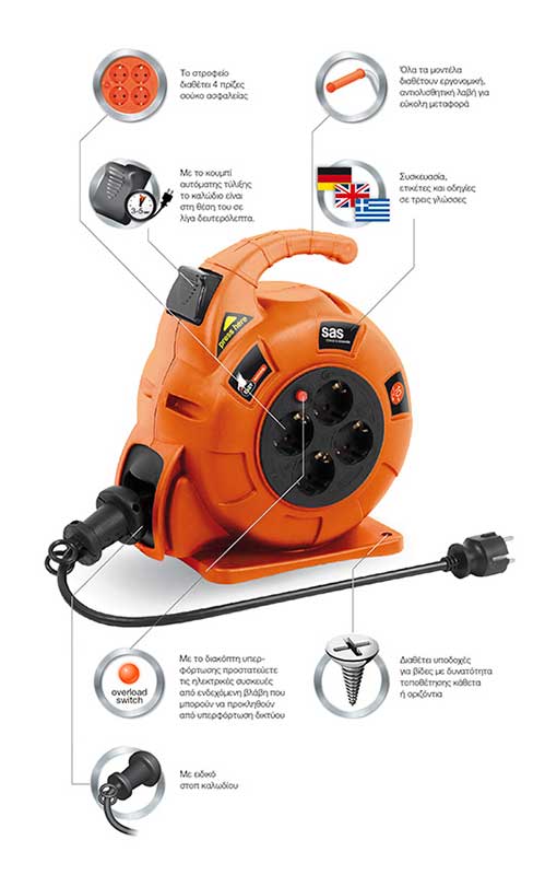 - Mε το στροφείο τεχνολογίας Easy της sas η τύλιξη του καλωδίου στο στροφείο είναι πλέον εύκολη και γρήγορη υπόθεση!
