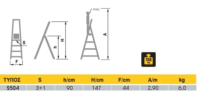 Υψηλής σκληρότητας κατασκευή αλουμινίου με πάχος 1,7mm για επαγγελματική & οικιακή χρήση.Διαγραμμισμένα σκαλοπάτια για ασφαλές πάτημα.Ατσάλινες βίδες με κόντρα παξιμάδια τύπου αεροσκαφών με νάιλον επένδυση.Λαστιχένια πέλματα με ένωση ασφαλείας.Ελαφριά, πρακτική στη μεταφορά και αναδίπλωση.Με ιμάντες για καλύτερη ασφάλεια σε όλα τα μοντέλα Μέγιστη αντοχή 150kg.Η σκάλα κατασκευάζεται σύμφωνα με τα ευρωπαϊκά πρότυπα EN131.