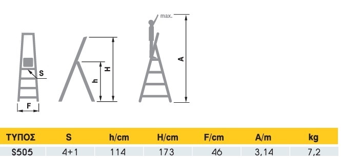 Σκάλα Αλουμινίου Steady 4 Σκαλιά + 1