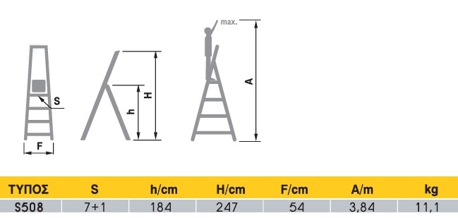Υψηλής σκληρότητας κατασκευή αλουμινίου με πάχος 1,7mm για επαγγελματική & οικιακή χρήση.Διαγραμμισμένα σκαλοπάτια για ασφαλές πάτημα.Ατσάλινες βίδες με κόντρα παξιμάδια τύπου αεροσκαφών με νάιλον επένδυση.Λαστιχένια πέλματα με ένωση ασφαλείας.Ελαφριά, πρακτική στη μεταφορά και αναδίπλωση.Με ιμάντες για καλύτερη ασφάλεια σε όλα τα μοντέλα Μέγιστη αντοχή 150kg.Η σκάλα κατασκευάζεται σύμφωνα με τα ευρωπαϊκά πρότυπα EN131.