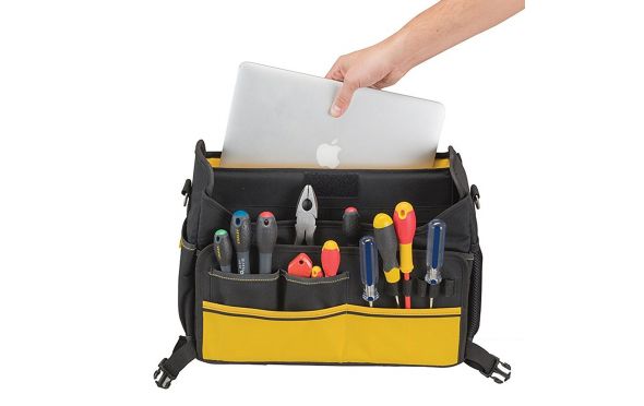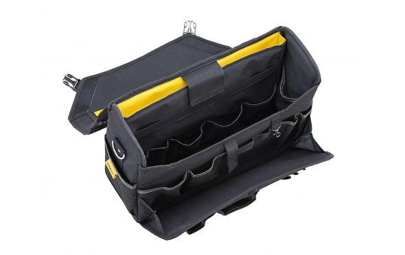 - Η τσάντα είναι συμβατή με τους τροχήλατους εργαλειοφορείς της Stanley χάρη στο λάστιχο που διαθέτει στην πλάτη.