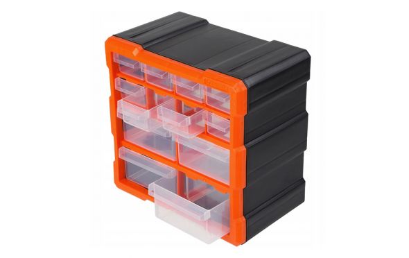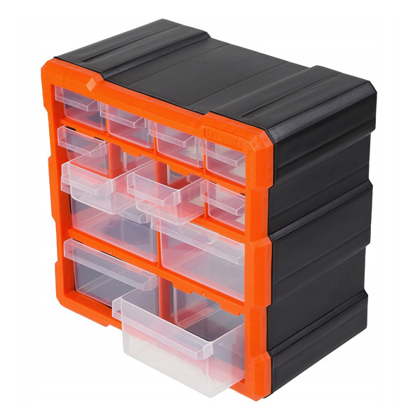 TACTIX - Κουτί Αποθήκευσης Πλαστικό με 12 Πλαστικά Συρτάρια Διάφανα