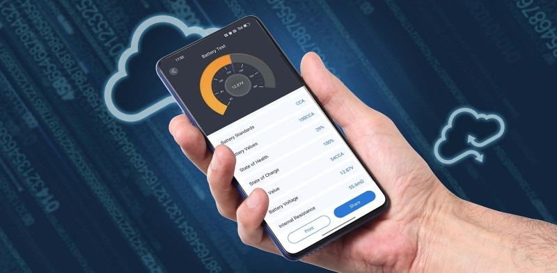 - Μια ενσωματωμένη μονάδα Bluetooth υποστηρίζει δοκιμές μπαταριών 12V με μια εφαρμογή με την οποία γίνεται ζεύξη μέσω Bluetooth.