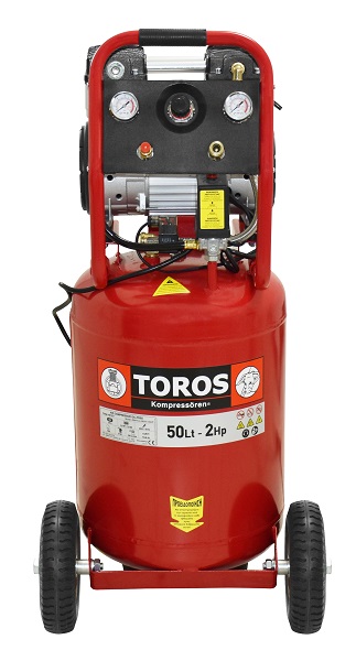 TOROS - Αεροσυμπιεστής Κάθετος Μονομπλόκ Χαμηλού Θορύβου Oilfree 50Lt - 2.0HP