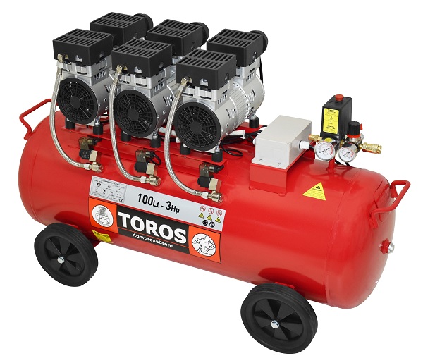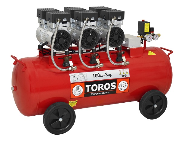 TOROS - Αεροσυμπιεστής Μονομπλόκ Χαμηλού Θορύβου Oilfree 100Lt - 3.0Hp(3x1Hp)