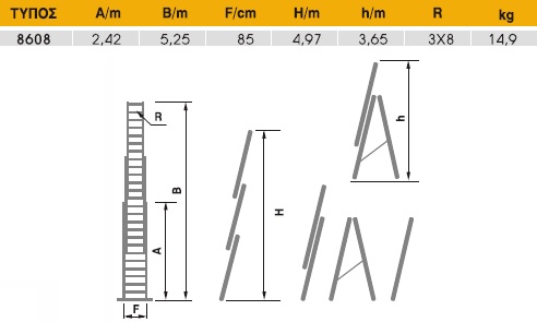 ULTRA PLUS - Σκάλα Τριπλού Συνδιασμού 3 Τεμαχίων (3X8).