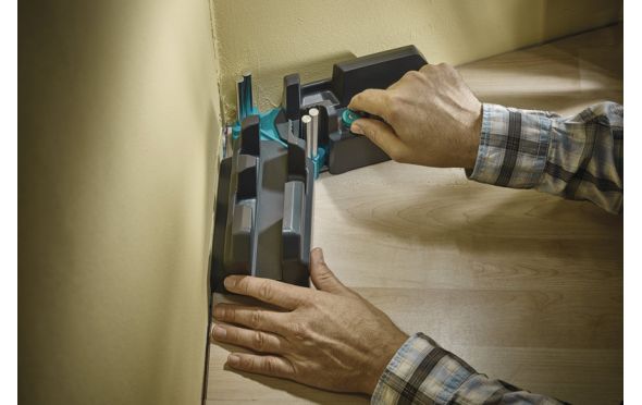 - Αυτόματη μεταφορά της σωστής γωνίας στο πριόνι χάρη στους ενσωματωμένους πείρους οδήγησης για το πριόνι χειρός (φαλτσογωνία).