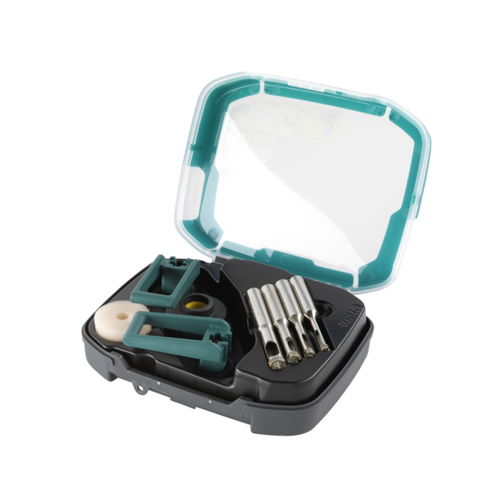 Περιλαμβάνει ποτηροκορώνες με επικάλυψη διαμαντιού «Ceramic» σε διαμέτρους 5, 6, 8 και 10 mm, καθώς και έναν οδηγό με ενσωματωμένο σπόγγο για σωστή υδρόψυξη της επίστρωσης διαμαντιού και την ακριβή διάνοιξη οπών.